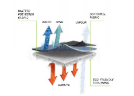 – Tesatura cuplata favorizeaza mentinerea temperaturii corpului si controlul transpiratiei, pentru un echilibru perfect intre caldura si respirabilitate.